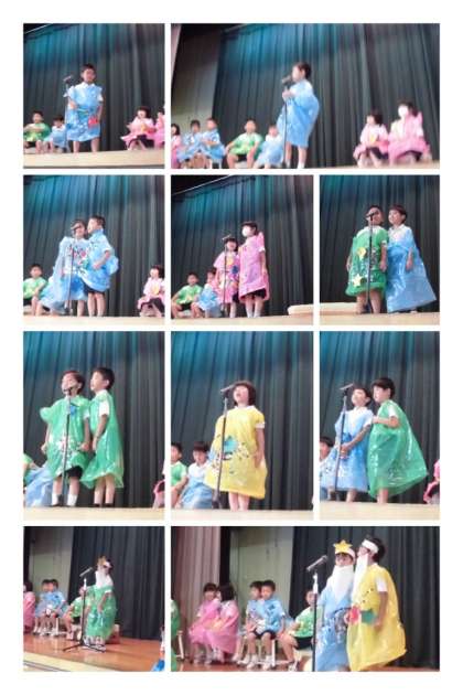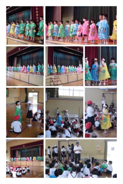 天の川の色とりどりの扮した子どもたちが、「家族の幸せ」「将来の夢」「学習」「友だち」、いろいろな願い事を発表し、大きな拍手をもらっていました。司会が、感想をインタビューするおまけもありました。本当に楽しい七夕集会になりました!!