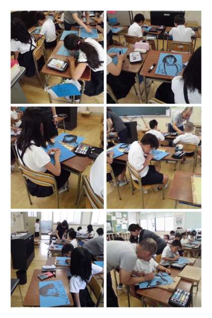 7月4日(木)、4年生の図画工作の授業の様子です。自分たちが頑張っている姿を版画にしていました。
