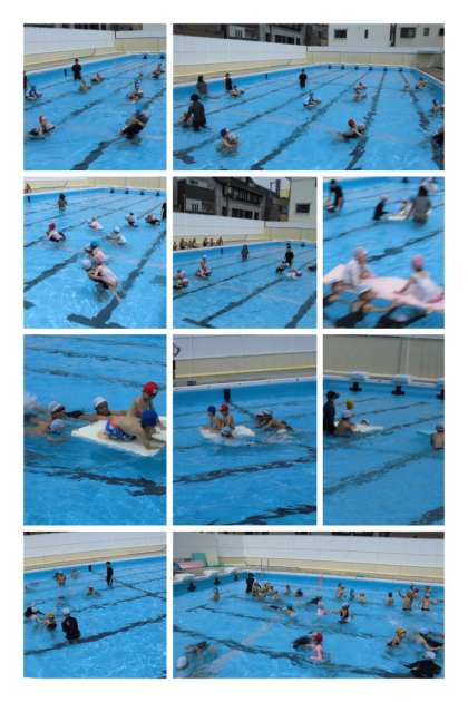 プールの中では、顔つけやボール浮きにもチャレンジしたり、5年生におんぶや浮きしまに乗せてもらって楽しそうでした。最後はみんなで宝探し。顔を水につけるのが苦手だった園児もたった一日で出来るようになった人もいたようです!!