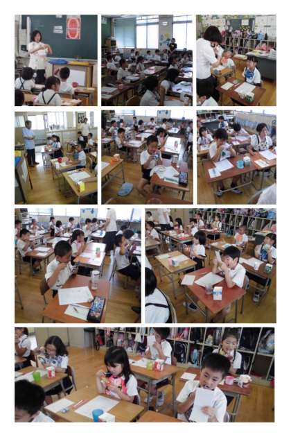7月8日(月)、今日は「歯」に関する行事がいろいろありました。4年生は「フッ素塗布」、6年生は「歯と口の健康教室」、そして、2年生は「歯磨き指導」がありました。