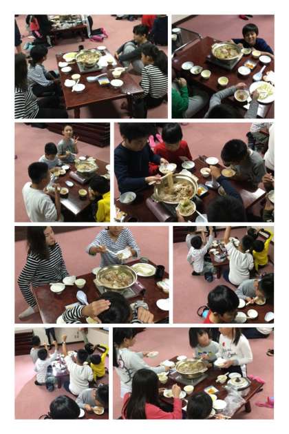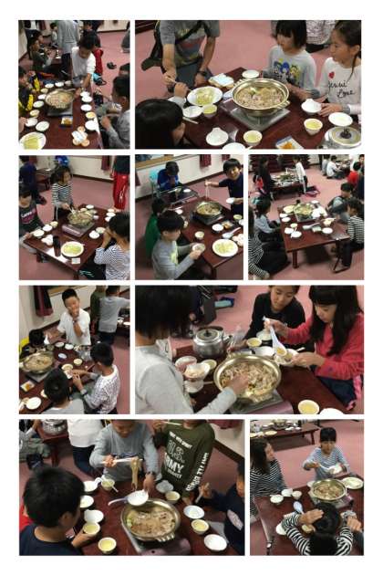 昼食から3時間、もう、にぎやかに豚鍋をつついています!!