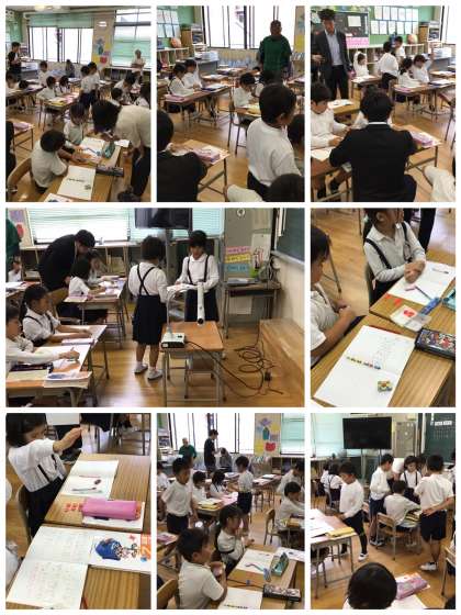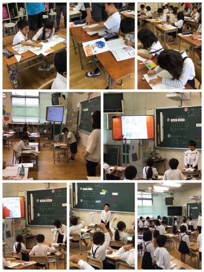 10月18日(金)、2年生で算数の研究授業がありました。かけ算で「3×2」と「2×3」の違いをおはじきや言葉で考えていました。おはじきや図を見ると分かっていても、言葉で説明するのは難しそうでしたが、みんな頑張っていました!!