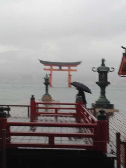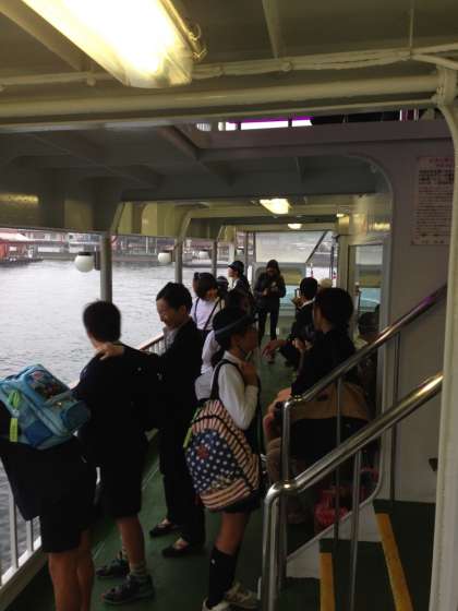 残念ながら、現地は、雨が激しくなっています。電車、フェリーを乗り継ぎ、厳島神社に到着。ちょうど結婚式が行われておりました。幸せそうな新郎新婦に、何人かの子どもたちは「おめでとうございます。」と声をかけていました。お二人にとっても、修学旅行に来ていた見知らぬ小学生から祝福の声をかけられたことはきっと心に残るのではないでしょうか?