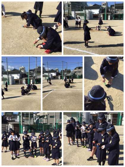 11月20日(水)、3年生の理科の学習の様子です。虫メガネと黒い紙を持って太陽の光を集める実験をしていました。