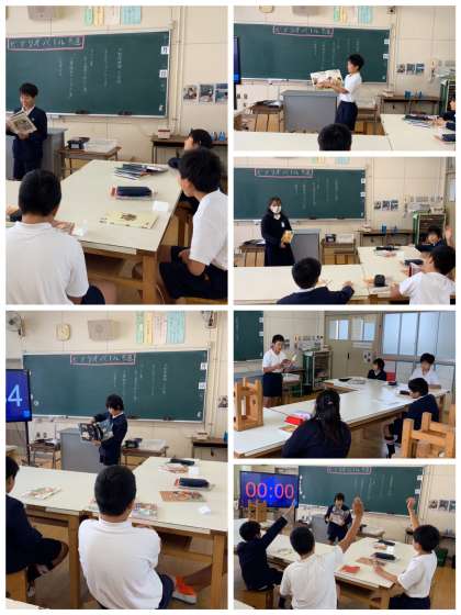 12月4日(水)、6年生のビブリオバトルの様子です。一昨日に予選、昨日に決勝が行われてチャンプ本が決定しました。