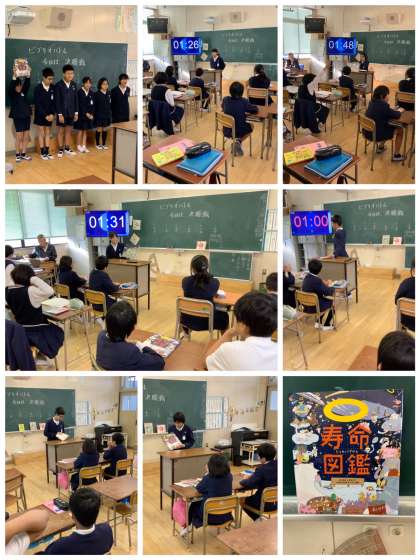 それぞれの子どもたちが、「おすすめ本」を持ち寄り、その面白さや読みどころをアピールして、一番読みたいと思わせた本がチャンプ本です。6年生からは「寿命図鑑」が選ばれました!!