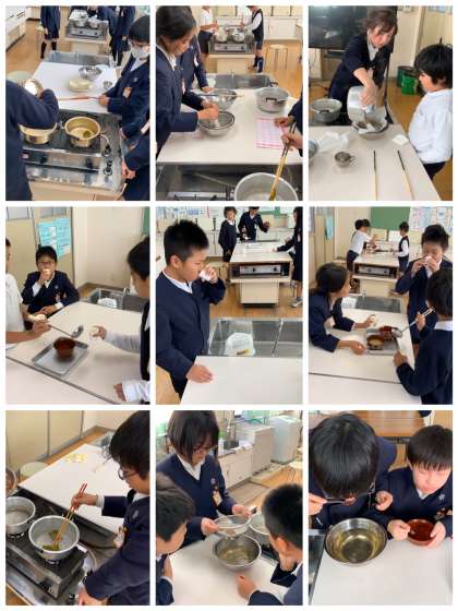 12月18日(水)、5年生の家庭科の授業の様子です。出汁について学習しました。