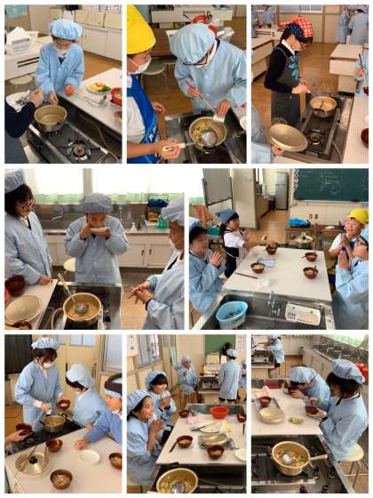 給食後の実習でしたが、子どもたちは美味しくみそ汁をいただきました!!