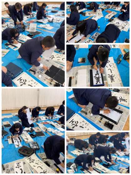 1月8日(水)、5年生が国語の時間、書き初めをしました。