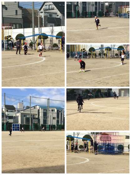 1月10日(金)、20分休憩の運動場の様子です。2年生を中心にトラックを走っていました。今月末から始まるランニングウィーク(RW)の先取りで5周以上を走っていました。一輪車で走る3年生や体操服に着替えた1年生も出てきて、今月のめあて「天気の良い日は 外で元気よく遊ぼう」を実践していました!!