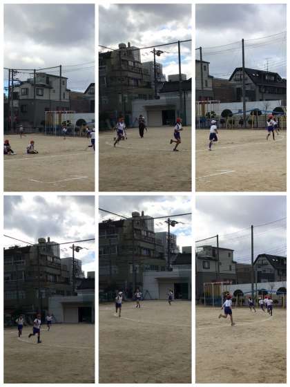 音楽が流れている間にトラックを何周走れるかを計測していました。子どもたちは、自分の力にあったスピードで元気に走っていました!!