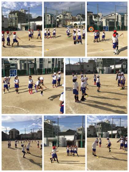 1年生は、走るのが大好きで月曜日に来週から始まるランニングウィークのカードが配られると、次の休憩時間には早速トラックを走っていました。この時間は、音楽が流れている間、自分の力に合わせて走りました。そのあとは大縄跳び、そして、最後にドッチボールと楽しく運動を頑張っていました!!