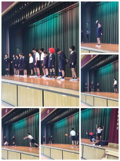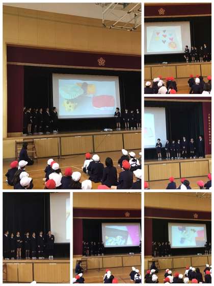 2月13日(木)、児童集会でクラフトクラブと野外スポーツクラブの発表がありました。