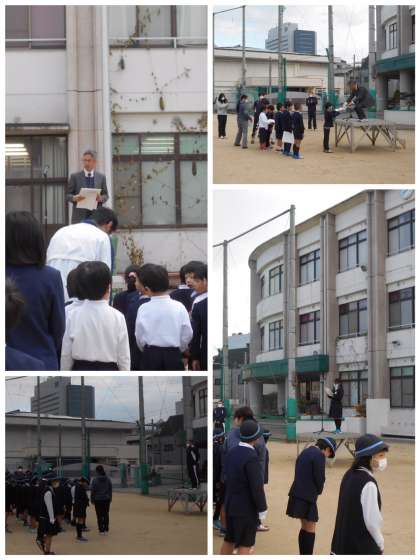 2月17日(月)、今週も北風がビュービューと吹く中で児童朝会がありました。2月に入ってからは、週明けの月曜日が寒くなるような気がします。校長先生から学校アンケートのお話があり、その後、賞状の伝達がありました!!