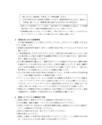 原則家庭での監護をお願いします。どうしても家庭で監護できない場合は、学校にご相談ください。