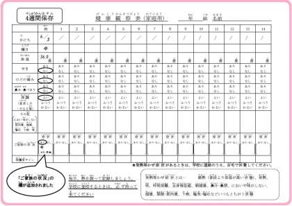 【新々】健康観察表(PCR検査有無付) ※6/17(水)より変更
