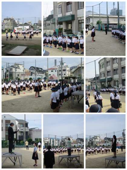 6月15日(月)、3月からの学校休業、6月からの分散登校を経て、ようやく三軒家西小学校の児童が全員集合しました。まだ、マスクをしてソーシャルディスタンスを保ちながらの集会でしたが、新しい友だち、新しい先生、そして新入生の紹介をすることができました。