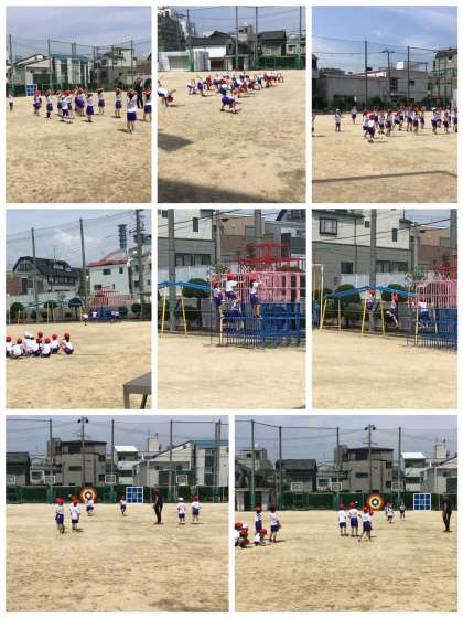 気温が高かったので、マスクを外して運動しました。子どもたちは、気持ち良さそうに走ったり、ジャングルジムに登ったりしていました!!