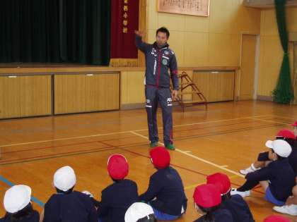 お話の中では、「応援してくれる周りの方にしっかりと感謝することが大切!」「すぐにあきらめない心を持とう!」などの話をご自身の体験をもとおもしろく語っていただきました。子どもたちもしっかりと話を聞いていました。