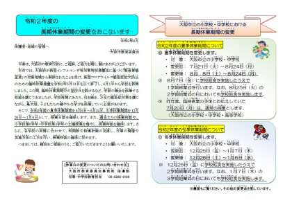 お知らせ(教育課程の見直し、長期休業期間の変更について)