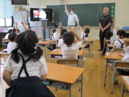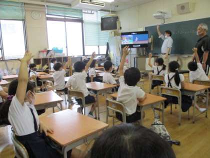 1年生の英語活動です。みんなノリノリで英語で質問に答えていました。。