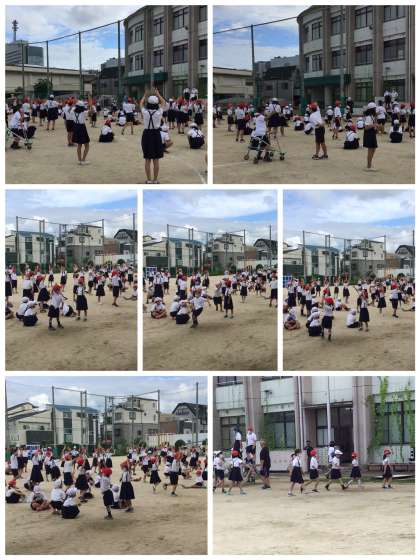 集会委員が朝礼台の上から、「船長さんが言いました。右手をあげてください」「回ってください」と次々に指示を出していました。途中、「先生が言いました・・・」といろんなパターンで指示を出して、ひっかかってしまう子もいました!!