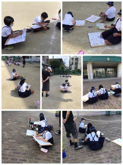 7月22日(水)、5年生が校舎の写生をしていました。1時限だったので、日陰はまだ、涼しかったですが今はだんだん気温が上がってきました。来週ぐらいには、梅雨が明け、さらに暑くなるかもしれませんが、熱中症に気をつけてあと2週間がんばります!!
