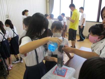 また、実際にろ過の実験もしました。汚れた水が砂や活性炭を通るととてもきれいな水になることに本当に驚きました。