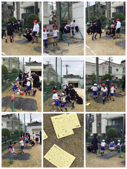 チャレンジカードにある技を一つでも多く合格しようとみんな必死です。先生や高学年にアドバイスをもらい、新しい技に合格すると、体育委員からシールを貼ってもらっていました!!
