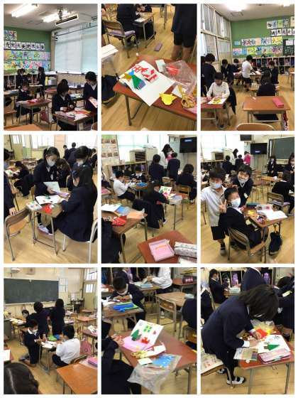 12月21日(月)、約4カ月の2学期もあと1週間になりました。今週の木曜日はクリスマスイブ、3年生が折り紙を使ってクリスマスカードを作っていました!!