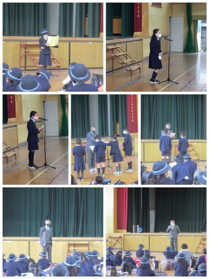 遅れましたが、終業式の様子です。3年生と6年生の代表が二学期に頑張ったことを発表してくれました。