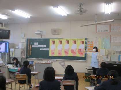 5年生の教室で、保健室の先生たちから『いのちの始まり』の授業がありました。