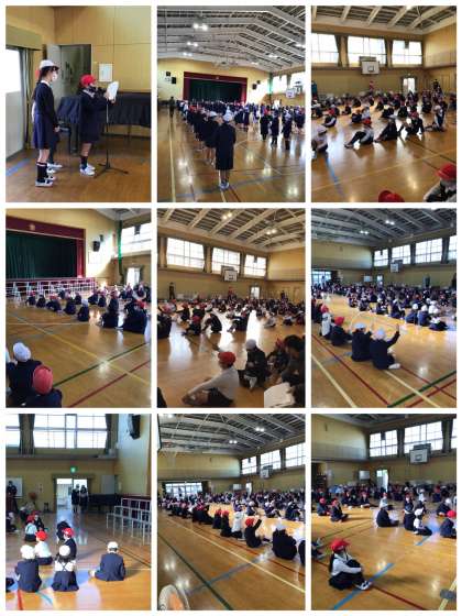 3月4日(木)、今年度最後の児童集会は、卒業を祝う会パート2を実施しました。集会委員が、事前に6年生からとったアンケートをもとにしてクイズを作ってくれました。