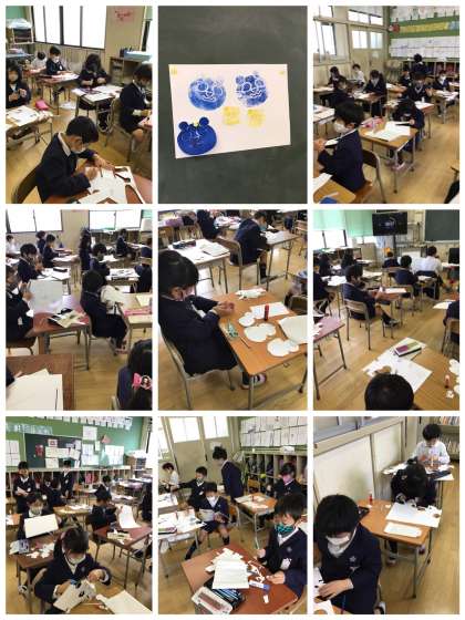3月5日(金)、2年生の図画工作の授業の様子です。紙版画を制作していました。