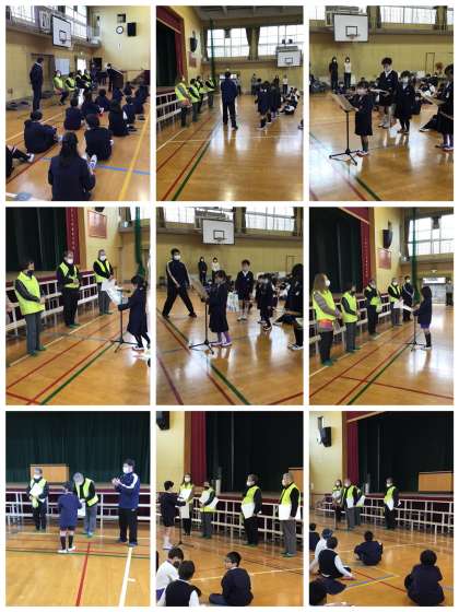 3月8日(月)、児童朝会で「見守り隊感謝の集いを実施しました。