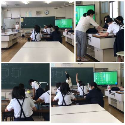 体積を求める学習です。少人数に分かれて学習をすすめました。