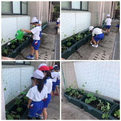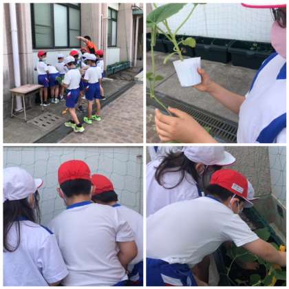 6月2日、3年生がみどりのカーテンとして、ひょうたんを植えました。