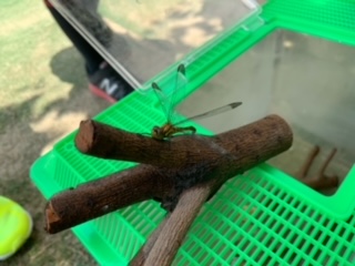 2年生が9日に捕まえたヤゴ2匹が、早くもトンボになりました!