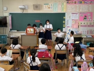 2年生の読書タイムに、5年生の図書委員会の子が来て、紙芝居をしてくれました。
