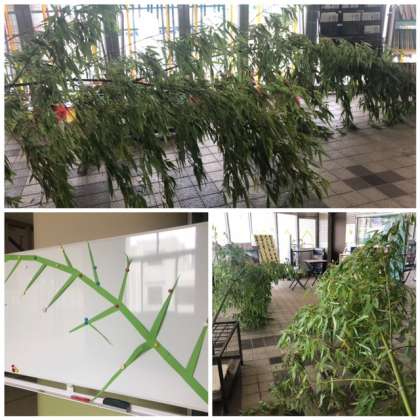 学校の中にたくさんの笹が届きました。