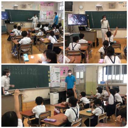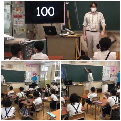 黒板に数字を書いて、子どもたちは消された数字をあてて、英語で答えていました。
