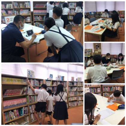 そして、自分たちの課題の解決に向けて、図書室で調べました。