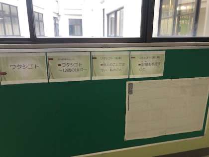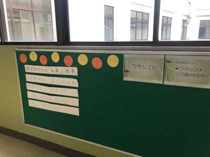 自分たちのテーマや核兵器の数だけ点のある新聞が貼ってあります。