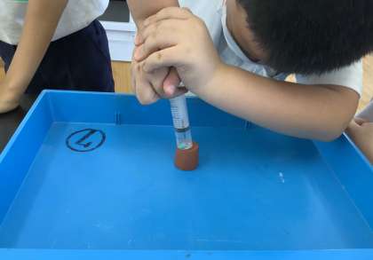 ピストンを押していくと、「だんだんかたくなる!」「空気がギュッとなっている!」