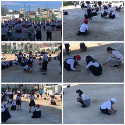 1.3.5年チーム対2.4.6年チームでどちらがたくさんの石を拾うことができたかを競います。