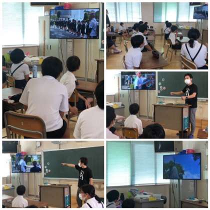 以前に6年生と一緒に修学旅行に行った先生が、平和へのメッセージの場面を見せてくださいました。