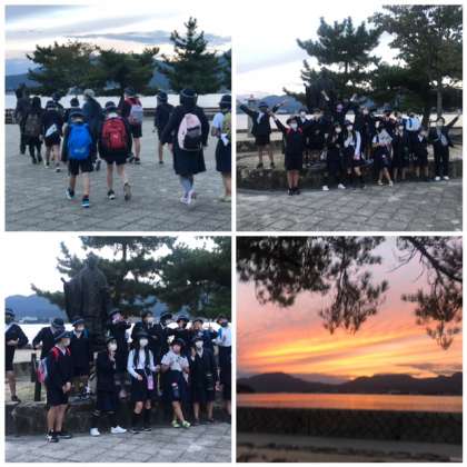 夕焼けもきれいで、みんなで宿舎を目指して歩きました。