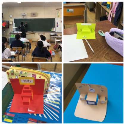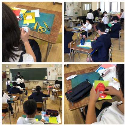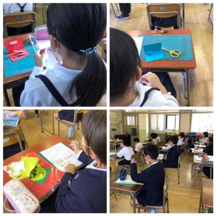 とびだす工夫の切り方を学んだ子どもたちは素敵なカードにうれしそうです。