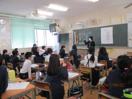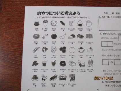 栄養指導の先生に来ていただき、5年生と1年生で栄養指導がありました。
