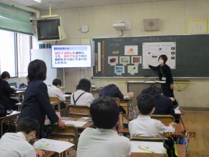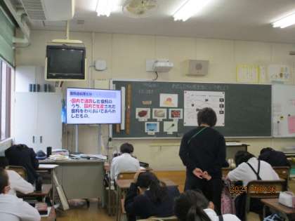 栄養指導の先生に来ていただき、5年生で栄養指導がありました。